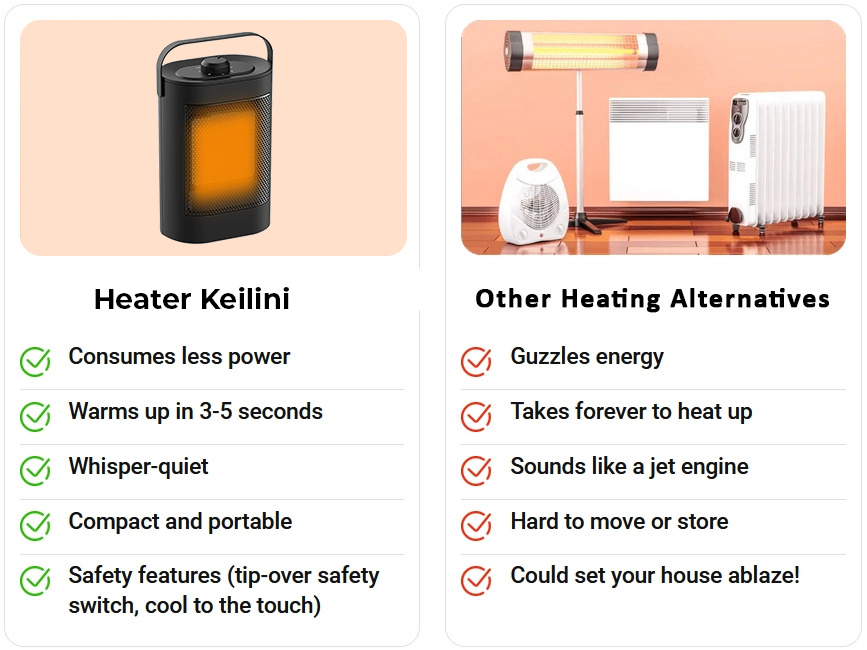 Keilini is the portable, powerful ceramic heater that will INSTANTLY put a stop to bone-chilling coldness, anywhere in your home!