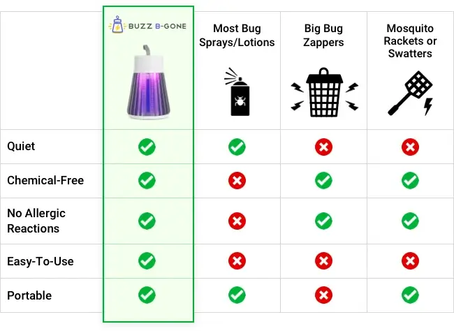 2. Chemical-Free – This anti-mosquito lamp doesn't use any toxic, smelly chemicals that could irritate your nasal passages, give your child a rash, or endanger your pet. If you can't stand those toxin-filled sprays, lotions, or mosquito coils, BuzzBGone is the way to go!